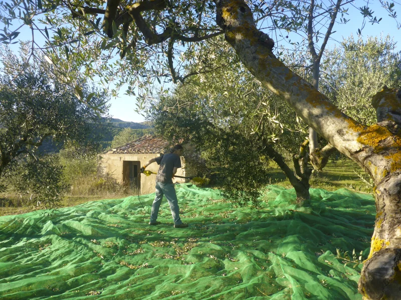 Die Ernte erfolgt von Hand, z.B. mit Kämmen oder mit elektrisch betriebenen Olivenrüttlern, welche die Äste rütteln. Der Zeitpunkt der Ernte richtet sich nach dem Reifezustand der Oliven. Um ein qualitativ hochwertiges Olivenöl zu erhalten, werden die Oliven geerntet, wenn die Farbe der Olive vom grünen in einen dunklen Zustand beginnt. Genau dann haben wir den optimalen Zeitpunkt um ein aromatisches Olivenöl mit möglichst vielen Polyphenolen zu erhalten. Dann hat das Olivenöl einen leicht bitteren Geschmack im Mund und eine leichte Schärfe im Hals.