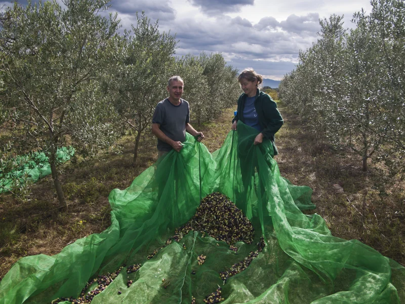 Die Oliven werden noch am Erntetag von einer ausgewählten Ölmühle zu unserem hochwertigen Olivenöl verarbeitet.